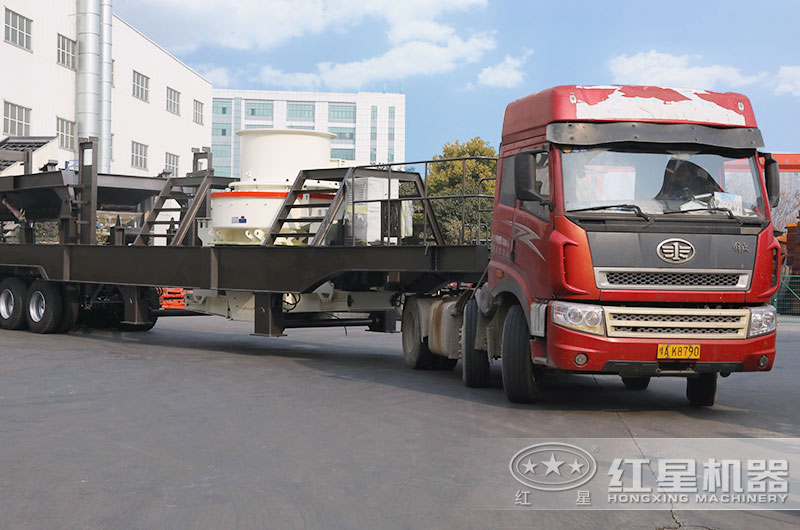 發(fā)貨現(xiàn)場(chǎng)(輪胎式移動(dòng)制砂機(jī)的轉(zhuǎn)場(chǎng)方式如圖所示)