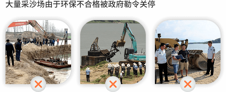 目前國內(nèi)的機(jī)制砂普及力度并不高,再加上之前環(huán)保不達(dá)標(biāo)被關(guān)停的沙場(chǎng)數(shù)量眾多,所以短時(shí)間內(nèi)合格機(jī)制砂的供應(yīng)依然非常緊張。