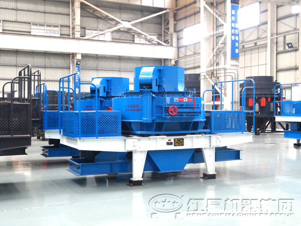 沖擊式破碎機(jī)是利用沖擊原理進(jìn)行碎礦的,工作時(shí),固定在主軸上的轉(zhuǎn)子在電動(dòng)機(jī)驅(qū)動(dòng)下按一定方向做高速旋轉(zhuǎn)運(yùn)行。當(dāng)物料從進(jìn)料斗落入到筒體內(nèi)之后,首先受到上轉(zhuǎn)子的副板錘沖擊,受到?jīng)_擊的物料以很高的速度沿轉(zhuǎn)子的切線方向拋向反擊板而產(chǎn)生撞出,物料在反擊板上的斜齒齒面及重力作用下,又沿斜下方向返回到轉(zhuǎn)子體外圓周與反擊板之間(即破碎腔),物料再次受到急速旋轉(zhuǎn)的主板錘沖擊后又被拋向反擊板,并繼續(xù)重復(fù)該過程。由于物料在破碎腔內(nèi)受到板錘和反擊板的周而復(fù)始的沖擊,以及物料塊之間的相互撞擊,這就使物料沿其自然節(jié)里面、層里面發(fā)生破碎。當(dāng)破碎后的物料粒度小于第一級轉(zhuǎn)子的排料間隙時(shí),物料在重力作用嗲進(jìn)入第二級轉(zhuǎn)子的破碎腔。第二級破碎過程與第一級相同,所不同的是第二級轉(zhuǎn)子的線速度比第一級更高,物料所受到的沖擊力更大,因此,可使物料破碎得更細(xì)小。當(dāng)物料破碎到預(yù)期成品粒度后,便從出料口排出。